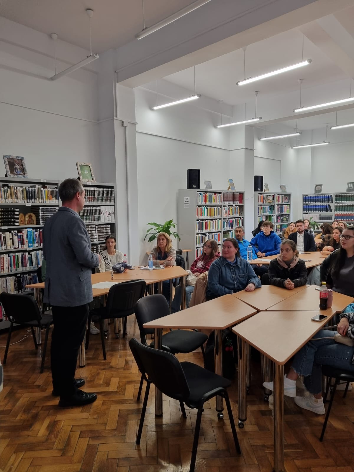 16 octombrie 2025 𝕽𝖆𝖎𝖓𝖊𝖗 𝕸𝖆𝖗𝖎𝖆 𝕽𝖎𝖑𝖐𝖊 - 𝟏𝟓𝟎 𝖉𝖊 𝖆𝖓𝖎 Evenimentul de la Universität Craiova Deutscher Lesesaal Partner Goethe-Institut (Sala Germană), prin care am marcat 150 de ani de la nașterea uneia dintre personalitățile inimitabile ale liricii universale, Rainer Maria Rilke, a fost deschis de dna prof. dr. Maria Tronea, vicepreședintă AMOPA-Roumanie, 10 ans d'existence și de dna prof. Maria Sîrbu, directoare Liceul Tehnologic "Constantin Brancusi" Craiova, care au vorbit despre viața, scrierile și muzeul dedicat acestuia, precum și despre importanța cunoașterii limbilor străine atât în citirea operelor în original, deschizând astfel o fereastră către sufletul scriitorului și o înțelegere mai profundă a textului, cât și în viața personală și profesională, dobândind în acest fel o perspectivă diversificată asupra lumii și un avantaj competitiv. În continuare, „brâncușienii” Rece Erika, Lohon-Dimon Valentin, Matei Deea, Ilinca Raul, Toană Alesia, Dolea Elena Andreea, Biban Vlad, coordonați de dna prof. Monica Asan, au recitat în limbile română, germană și franceză, iar colegul nostru, Eugen Cerăceanu, custodele sălii, a prezentat colecția de carte. Mulțumim tuturor pentru prezență și pentru implicare! 15 octombrie 2025 Introducere în afaceri Despre cum se identifică o oportunitate, despre cum se pun în practică ideile și se construiesc primii pași spre un plan solid, mai exact, despre cum se deschid ușile către lumea afacerilor, le-a vorbit celor prezenți la atelierul de ieri, de la Sala de Lectură Multidisciplinară, dl lect. univ. dr. Ionuț Răduică, de la Facultatea de Științe Sociale.