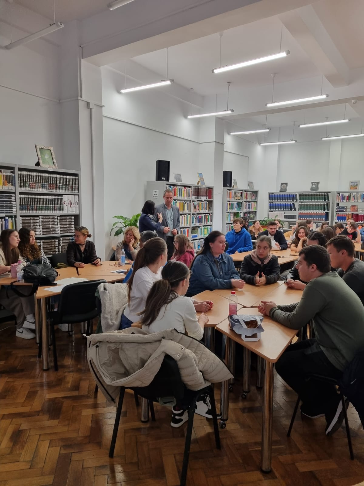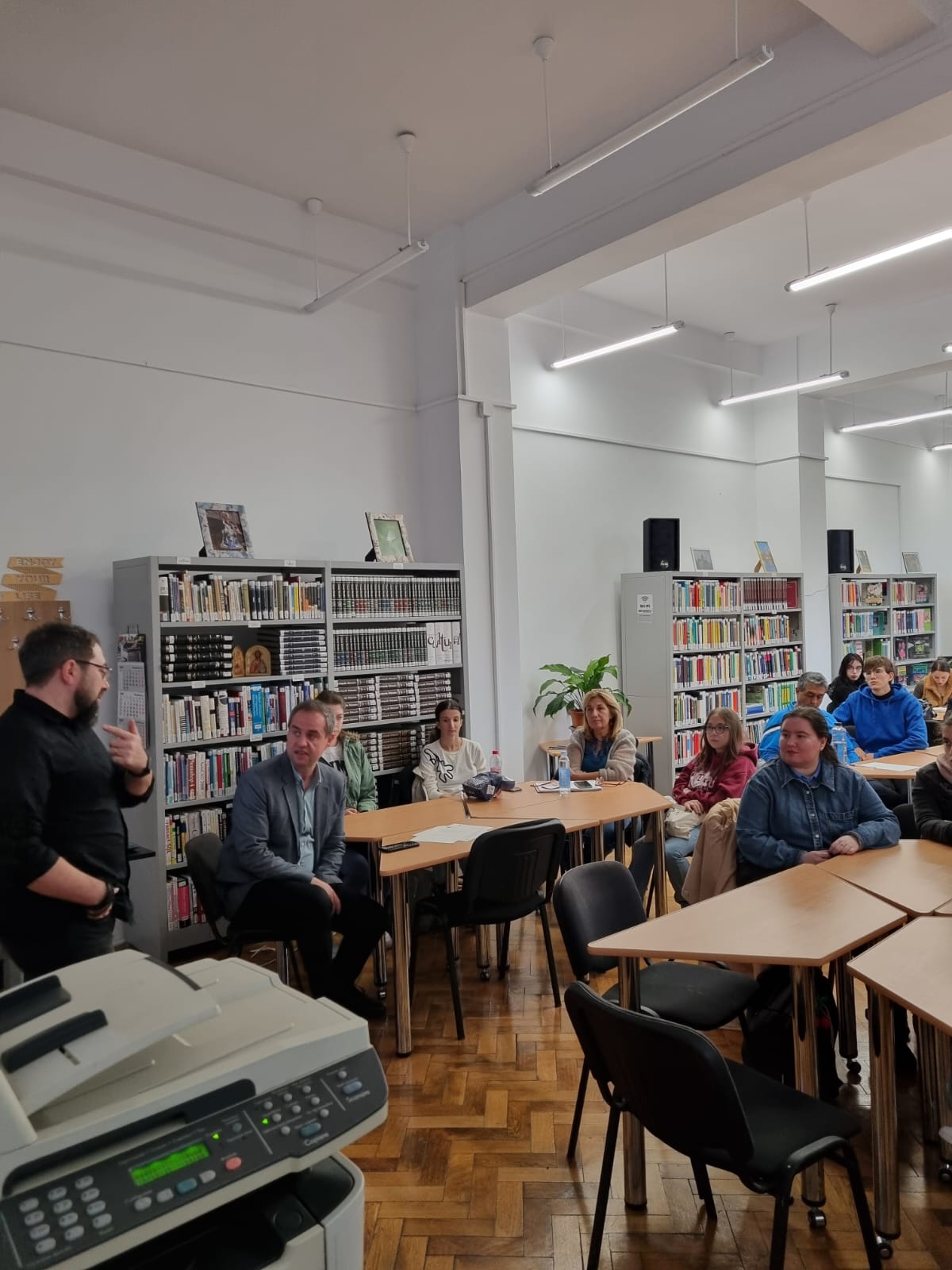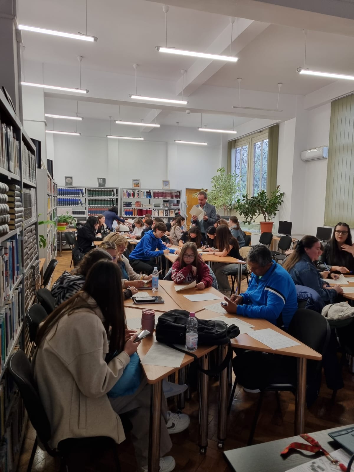 7 octombrie 2025 Prezentarea susținută astăzi, la Sala de Lectură Multidisciplinară, de dna lect. univ. dr. Mihaela Licurici, de la Departamentul de Geografie, Universitatea din Craiova, a fost o incursiune fascinantă în lumea seismologiei. Participanții veniți în cadrul programului Erasmus, elevi de la Colegiul Naţional Militar ,,Tudor Vladimirescu" Craiova și din Macedonia, Ungaria și Turcia, au avut ocazia să înțeleagă importanța cercetării seismice în prevenirea și gestionarea dezastrelor naturale. 30 iulie 2025 📷Dna conf. univ. dr. Anișoara Băbălău, președinte Asociația Dialoguri Europene, însoțită de Jesus Moya Mata și alți invitați, într-o scurtă vizită la Biblioteca UCV. 11-12 iunie 2025 📸Săptămâna aceasta am deschis larg porțile și am invitat pe viitorii studenți, prezenți la evenimentul 𝐙𝐢𝐥𝐞𝐥𝐞 𝐏𝐨𝐫𝐭̦𝐢𝐥𝐨𝐫 𝐃𝐞𝐬𝐜𝐡𝐢𝐬𝐞 𝟐𝟎𝟐𝟓, să descopere serviciile și resursele Bibliotecii noastre. 31 mai 2025 𝗧𝗲𝘇𝗮𝘂𝗿 𝗱𝗲 𝗴𝘂𝘀𝘁𝘂𝗿𝗶. Bucate oltenești & vinuri românești. Degustări și conferințe gastronomice. 🧆🍷📚Astăzi am fost prezenți cu o expoziție de carte de gastronomie și oenologie, alături de Statiunea Didactica Banu Maracine - Invatamant si cercetare, la Ramada Plaza, la întâlnirea dintre publicul general și profesioniștii bucatelor oltenești și specialiștii vinurilor românești. Reuniunea a fost organizată în cadrul proiectului “Craiova, capitală gastronomică est-europeană” de Liceul de Industrie Alimentară - Craiova, cu sprijinul Primăriei Craiova și cu implicarea platformei de gândire și acțiune We Are Romania / You are welcome. 💮Cu această ocazie, am avut bucuria să-l cunoaștem pe autorul cărții "Colecționarul de Sarmale și alte povestiri gastronomice", dl Cosmin Dragomir, care a avut amabilitatea să ne dea un autograf. Mulțumim! Felicitări organizatorilor și profesioniștilor prezenți la acest eveniment!👏 30 mai 2025 📸Internationaler Kindertag - Expoziție 👨👩👧👦 de Ziua Copilului. 📚Literatură pentru copii, cărți ilustrate, de povești, de cultură generală, romane, dar și materiale multimedia, la Universität Craiova Deutscher Lesesaal Partner Goethe-Institut. 29 mai 2025 📸𝗭𝗶𝘂𝗮 𝗣𝗼𝗿𝘁𝗶𝗹𝗼𝗿 𝗗𝗲𝘀𝗰𝗵𝗶𝘀𝗲 la Centrul Universitar Drobeta-Turnu Severin (CUDTS).