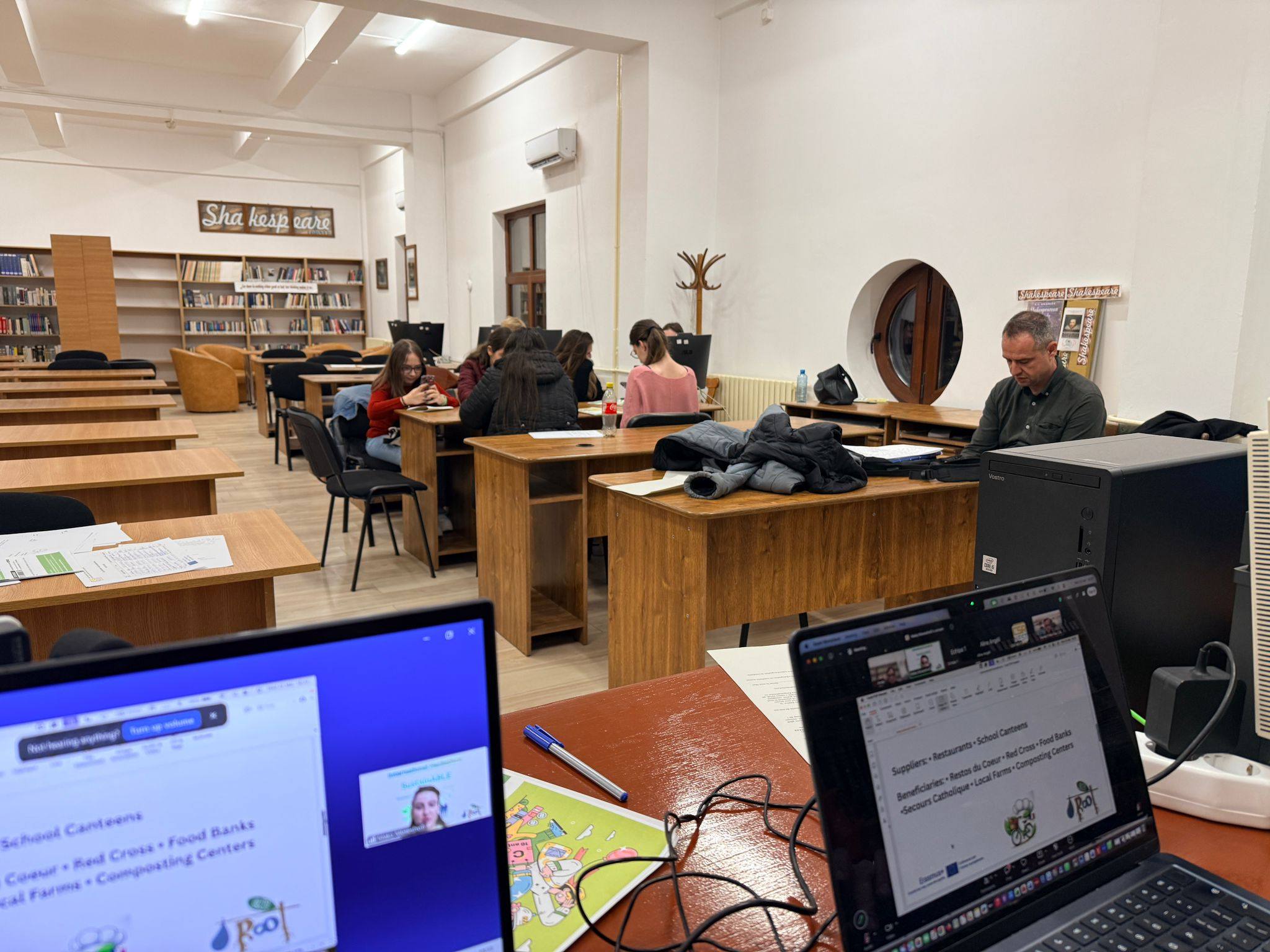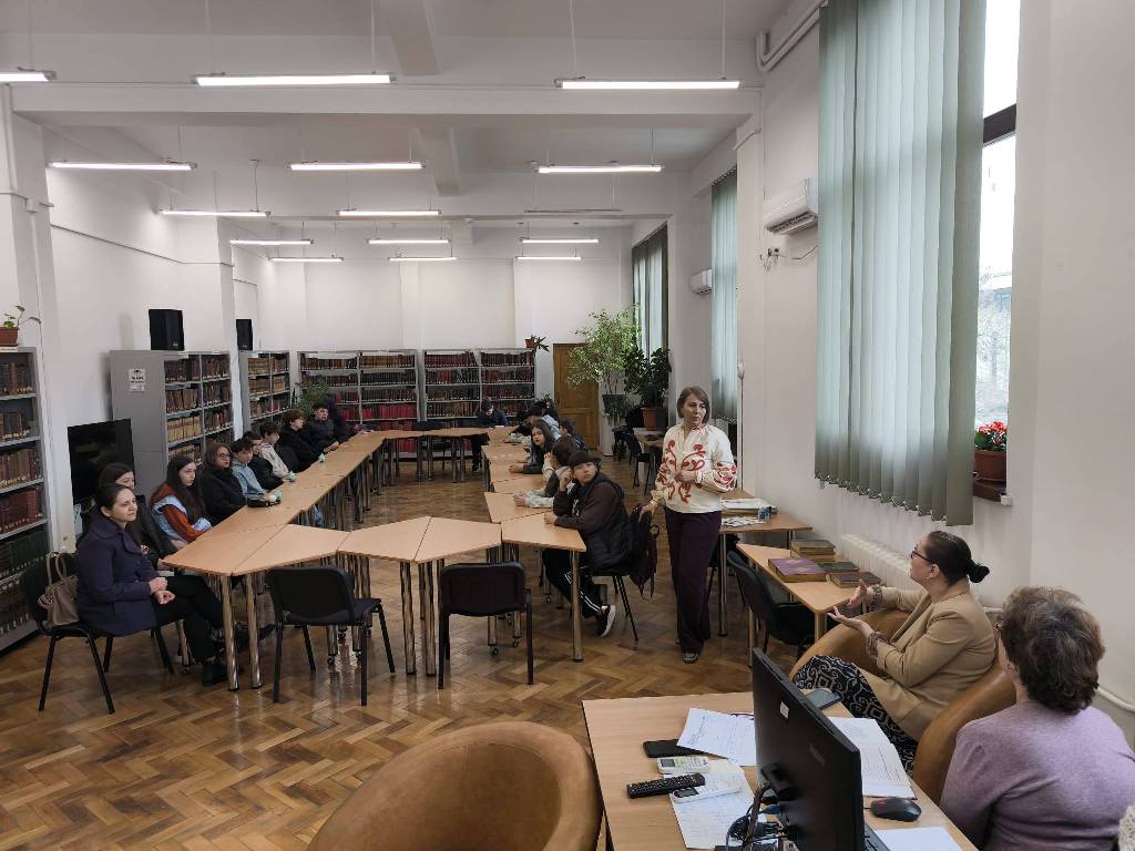 26 martie 2026 Activități în Bibliotecă 📷Dl prof. univ. dr. George Brătulescu le-a prezentat astăzi studenților, în cadrul Sălii de lectură a Departamentului de Chimie - Facultatea de Stiinte - Universitatea din Craiova, modalități și tehnici de căutare și documentare științifică atât în bazele de date (Chemical Abstract), cât și în revistele de specialitate în format fizic. 25 martie 2026 Activități în Bibliotecă 📷 Miercuri, 25 martie a.c, Asociatia CSR Nest a organizat atelierul pentru tineri, cu tema „Sustenabilitatea în afaceri”, în cadrul unui proiect Erasmus +. Evenimentul a fost găzduit de Sala de lectură a Facultății de Litere (368), Universitatea din Craiova. În timpul desfășurării atelierului, participanții, în majoritate studenți ai Facultății de Științe Sociale, au interacționat, prin videoconferință, cu tineri din Franța și Lituania, țări partenere ale proiectului. De asemenea, participanții au analizat diverse afaceri, în relație cu dilema costuri-eficiență, problema poluării, provocările digitalizării sau ale avansului tehnologic accelerat. Ca activitate practică, participanții au construit strategii și planuri de sustenabilitate.